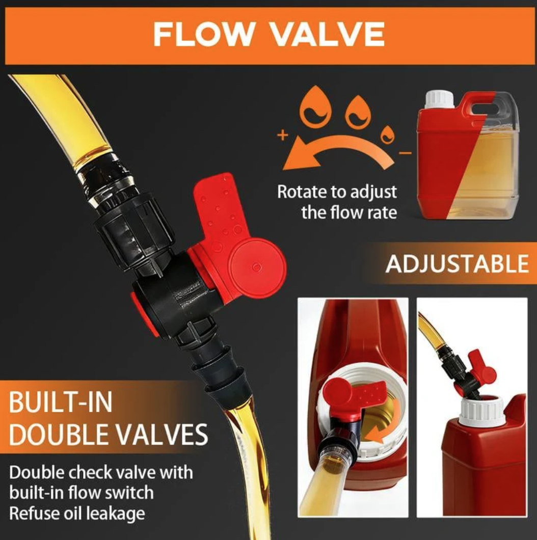“Portable and sturdy. Perfect for my car and lawn equipment. Transfers fluid quickly without spills.”